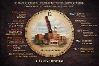 A private equity firm paid $12.5 million for a 161-year-old hospital. Then sold it for $263 million. Then it closed.